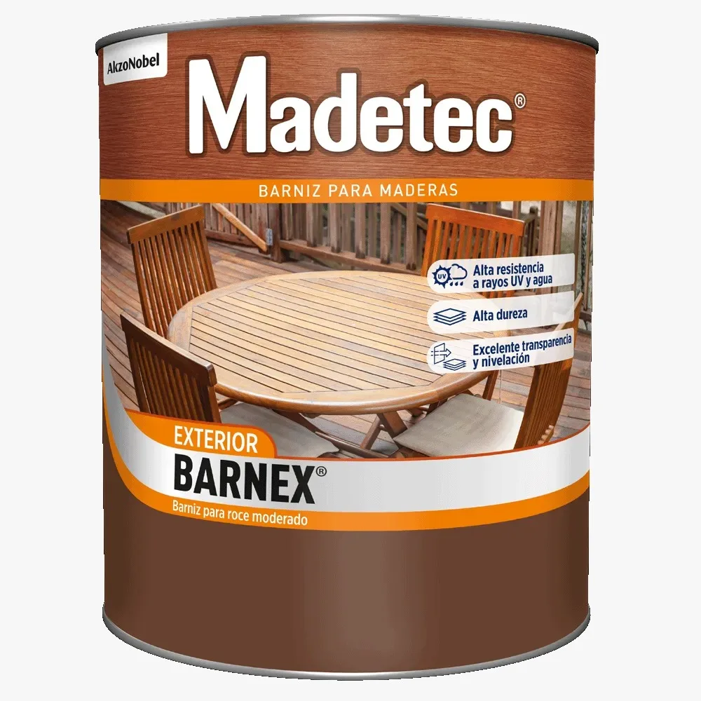 Es un Barniz diseñado para uso exterior, con alta resistencia a las manchas y a la intemperie, protege la madera de la humedad y de rayos UV, de fácil aplicación y acabado brillante, penetra la madera y permite su transpiración, proporcionando alta protección en exteriores, incluso en ambientes marinos y tropicales.